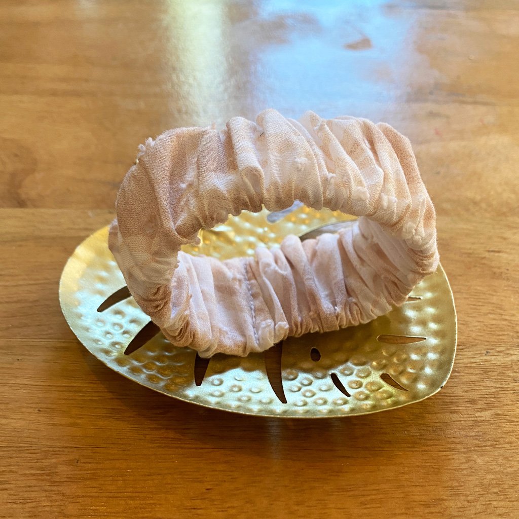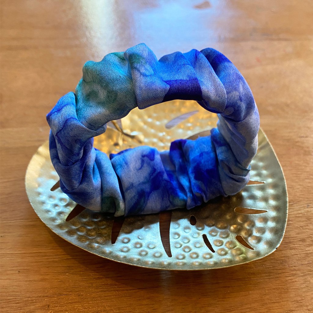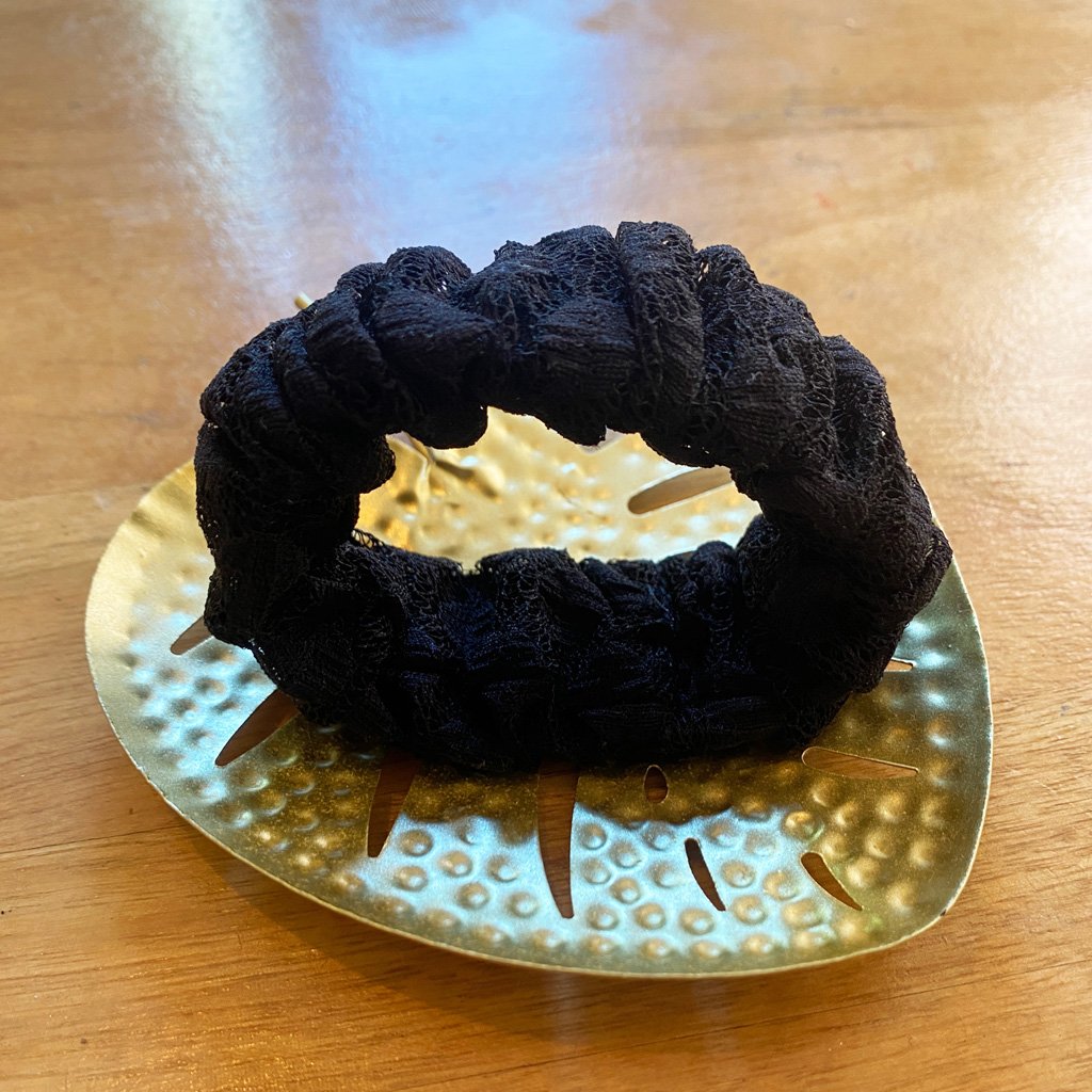 Le Srcunhie version plus large que le Little Scrunchie est bien plus qu’un simple bracelet : c’est un bijou artisanal unique qui habille votre poignet d’une touche raffinée et originale. Léger et élégant, il combine style et confort pour toutes les occasions.