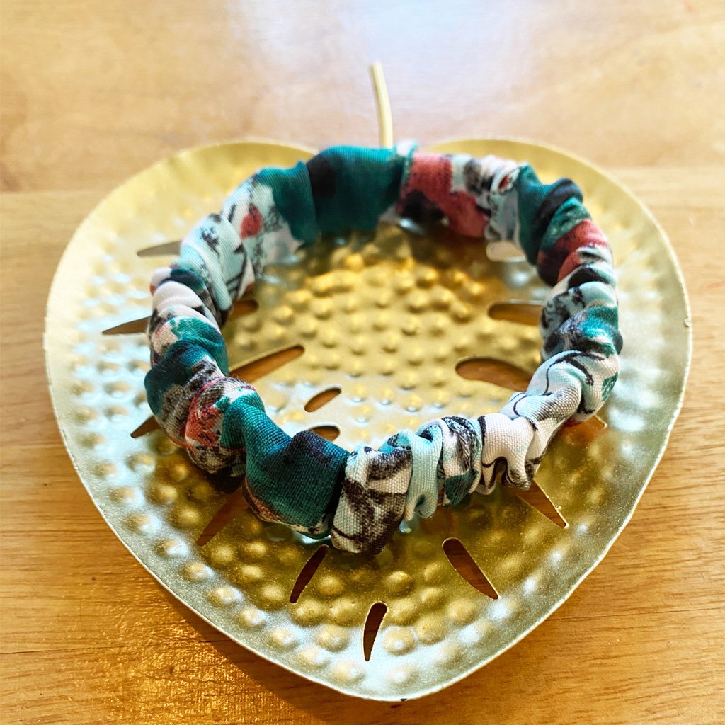 Bracelet Little Srunchie en tissu fait main, à porter au poignet ou en élastique de secours pour les cheveux. Pratique, stylé et disponible en plusieurs coloris.