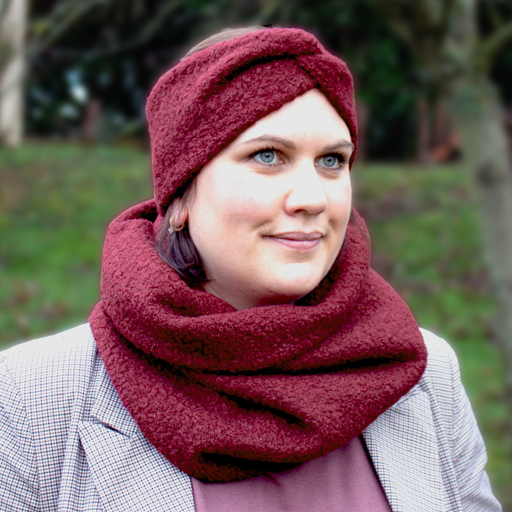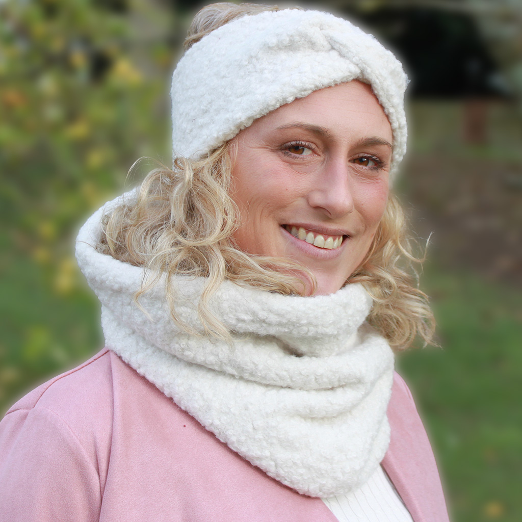Pour un look harmonieux et coordonné, ce tour de cou peut être associé au Bandeau Twist d’Hiver dans les mêmes coloris, créant un ensemble chic et féminin de la tête au cou.
