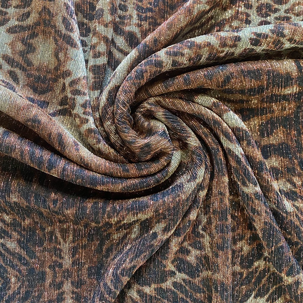 - Léopard pailleté : 100 % polyester, effet scintillant chic